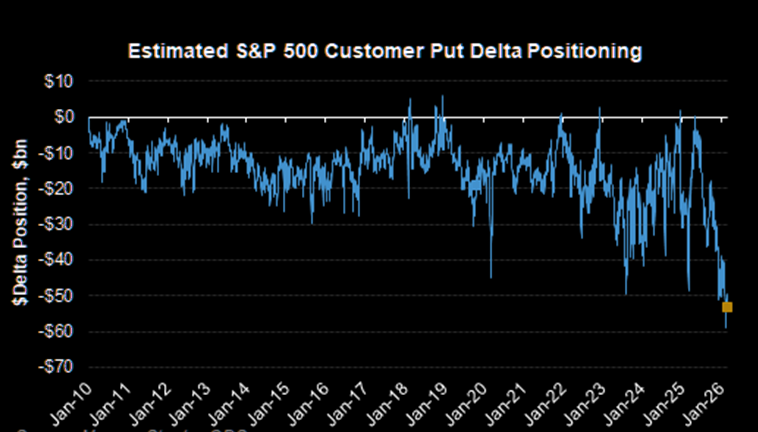 デルタベースのS&P500プットオプションは記録値となっています。多くの投資家がポートフォリオに対して保険をかけているわけですが、これは上昇時の燃料にもなります。26/3/5