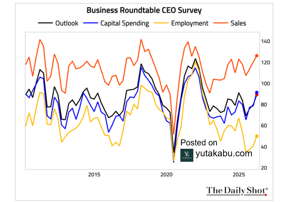 シカゴPMIは2月も改善しました。シカゴ地区はラストベルトの中核です。自動車、機械、金属加工といった、中西部らしい古典的な産業のセンチメントを反映しています。そして、在庫循環指標としての性格が強くて、在庫調整や受注動向に対する感応度が高いです。26/3/1