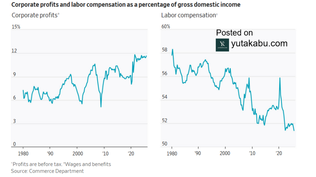 労働生産性の上昇は、実質雇用者報酬の増加をもたらす傾向にあります。AI生産性ブームは到来するのでしょうか。26/1/30