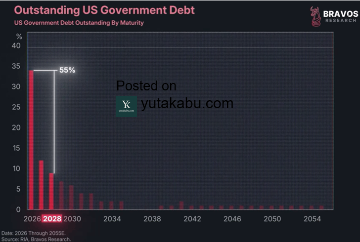 (チャート:米国債の借り換え計画)米財務省は、2026年に8兆ドルの政府債務の借り換えを行わなければなりません。波乱が起きなければいいですが…26/2/13