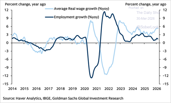 ブラジルの実質賃金上昇率は高水準です。26/3/31