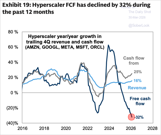 ハイパースケーラーのフリーキャッシュフローは著しく減少しています。26/3/31