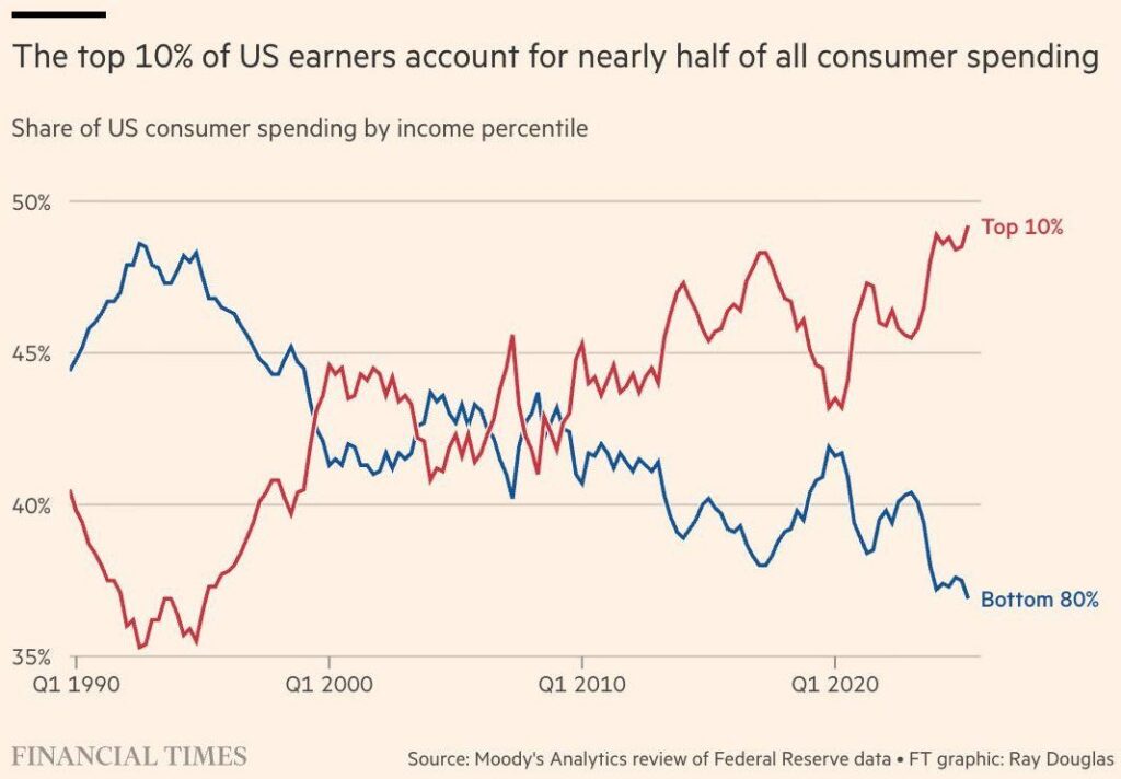 さらに問題なのは、資産価格に敏感な富裕層(上位10%)の消費シェアが50%を占めていることです。26/3/31