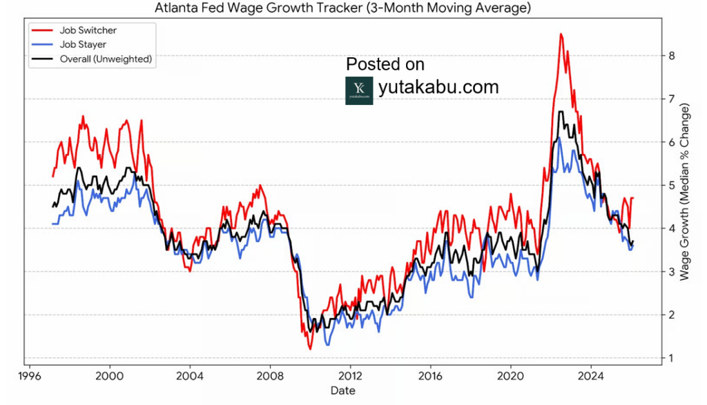 転職者の賃金上昇率は底打ちしたように見えます。転職プレミアムも改善し、労働市場は改善に向かっているようです。26/3/5
