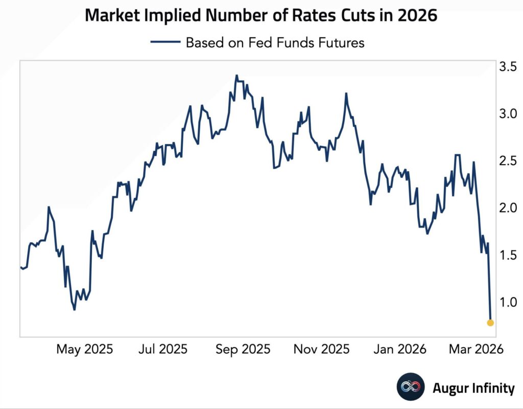 2026年の期待利下げ回数は、イラン戦争によって、ついに1回を切ってしまいました。26/3/14