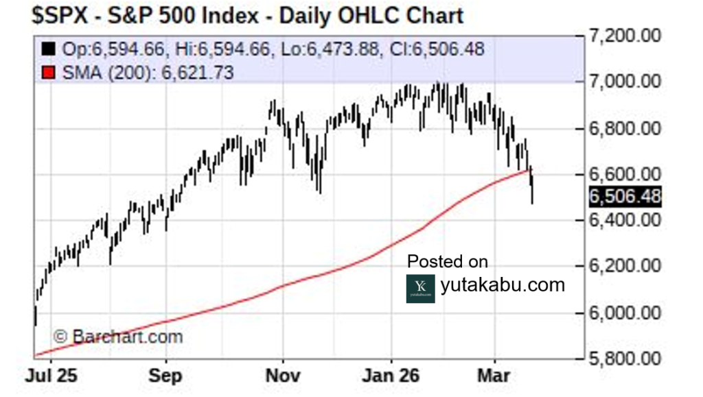 S&P500は、200日移動平均を下回りましたが、まだ高値から7%弱しか下落していません。26/3/22