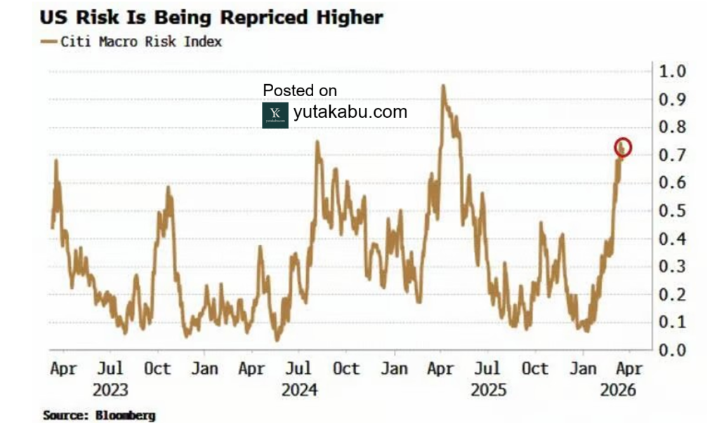 シティマクロインデックスは、急上昇しています。去年4月の、関税戦争に対するこの世の終わりみたいなセンチメントにまで、足元きております。26/3/22