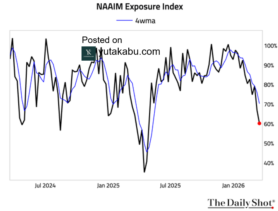 ファンドマネージャーは株のポジションを抑えています。高値から5%しか下落していないにもかかわらずです。26/3/15