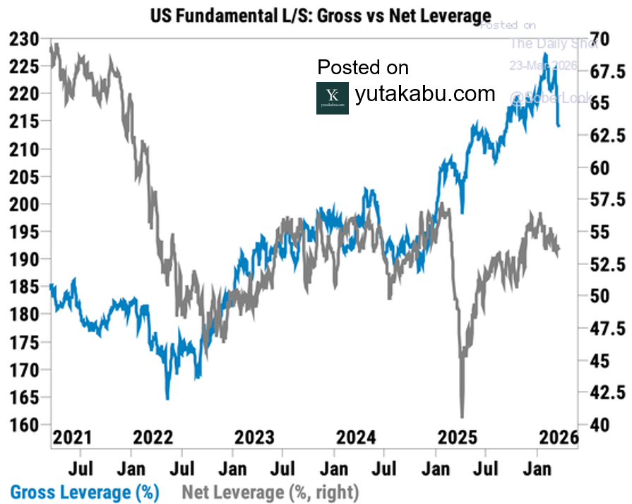 ロングショートヘッジファンドは、アンワインドを発生させグロスレバレッジを落としています。これは個別株のチャンスでもあります。26/3/25