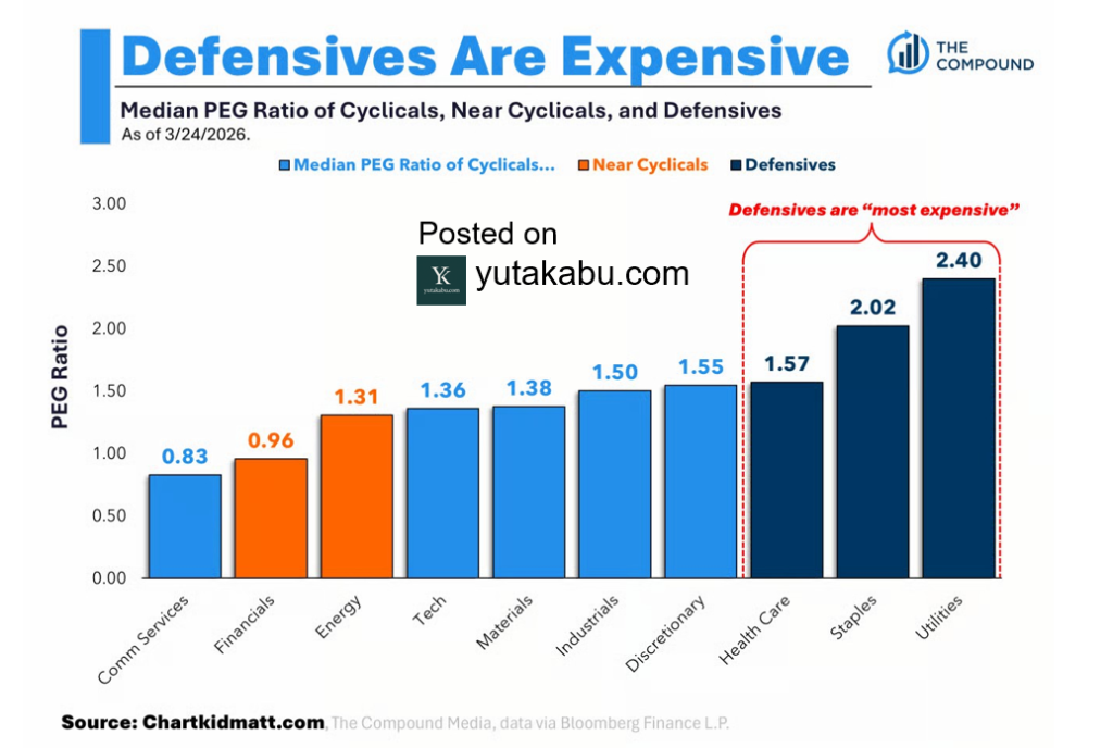 PEGレシオ上位3セクターは、いずれもディフェンシブセクターです。26/3/26