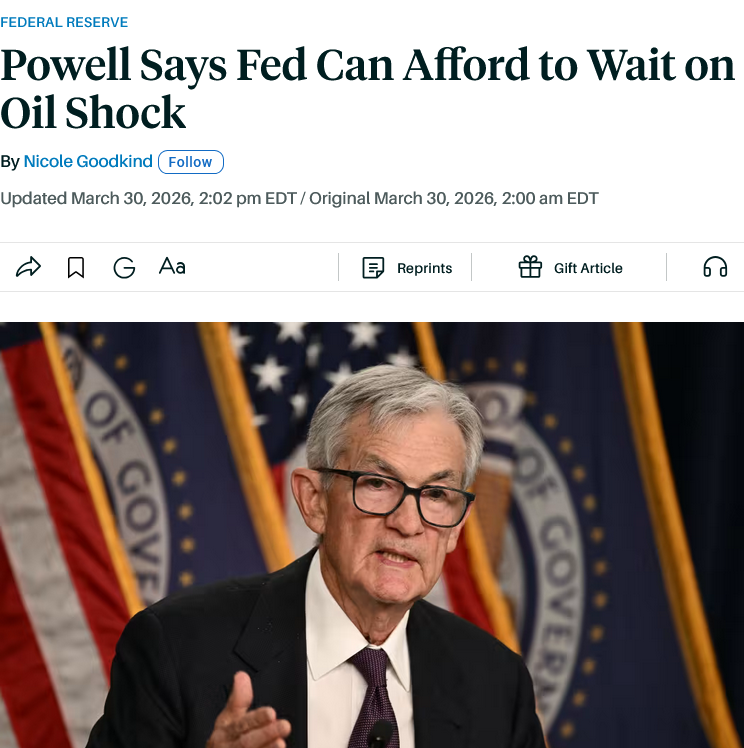 FRBが金融市場を安心させる発言を始めました。26/3/31