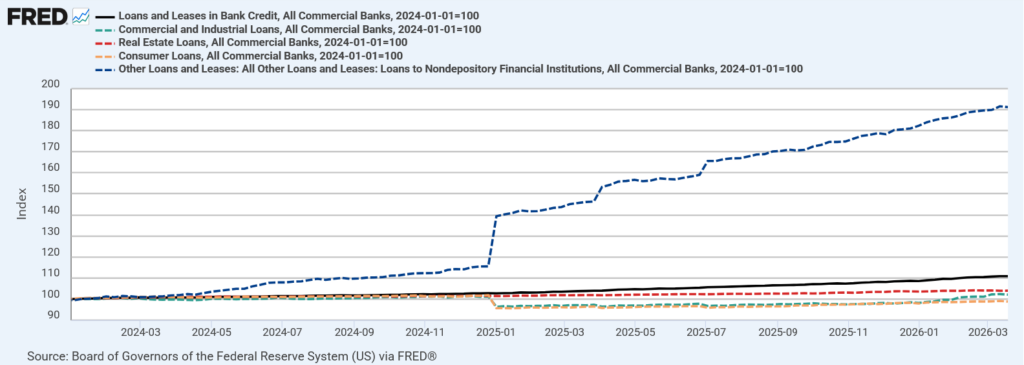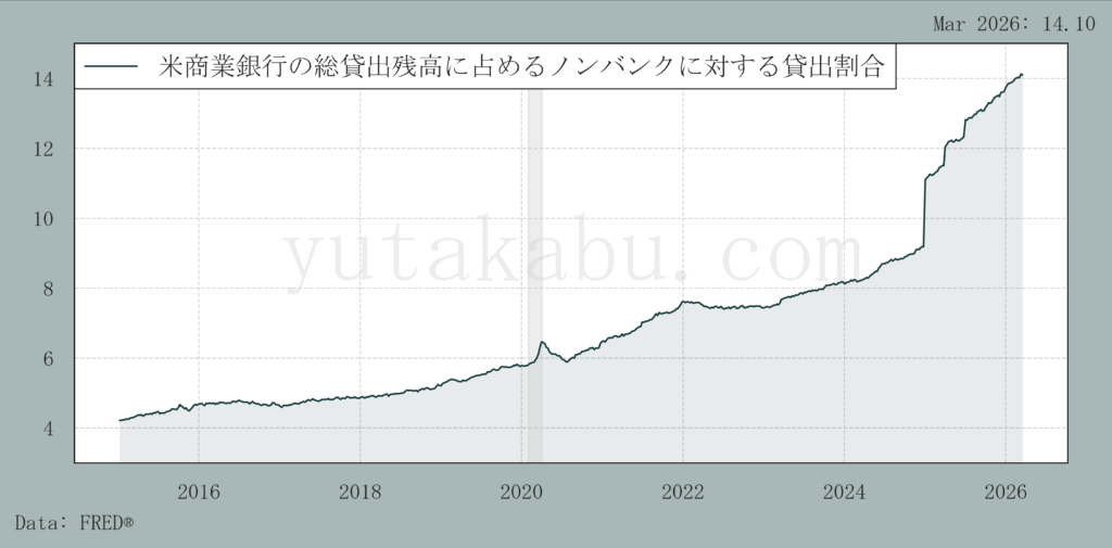 欧州銀行の貸出におけるプライベートクレジットの割合は、一桁%前半なようです。議論すべきは、間接的なエクスポージャーですが、議論する術がありません。26/3/29