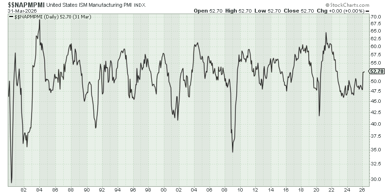 ISM製造業PMIは、予想外にプラスを維持しました。26/4/3