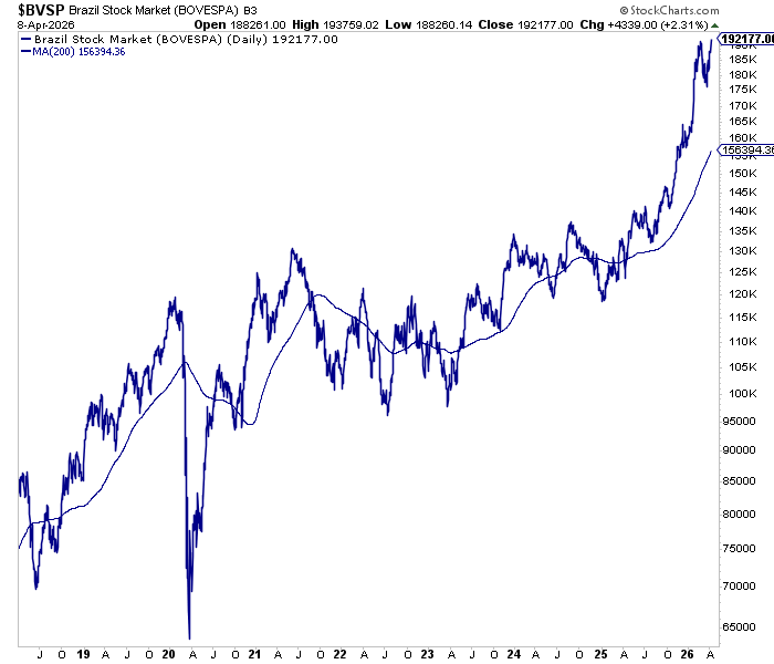 ボベスパは一足早く最高値を更新しました。26/4/9