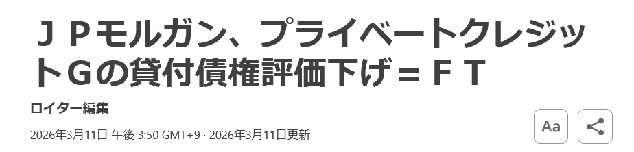 プライベートクレジットの市場環境は以下の通り。悲惨です。26/4/10