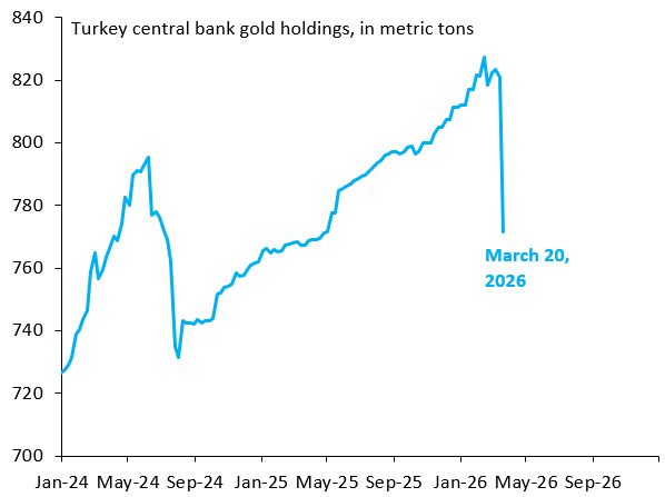 トルコの中央銀行は、外貨準備とトルコリラの防衛のため、金を売却しています。26/3/28