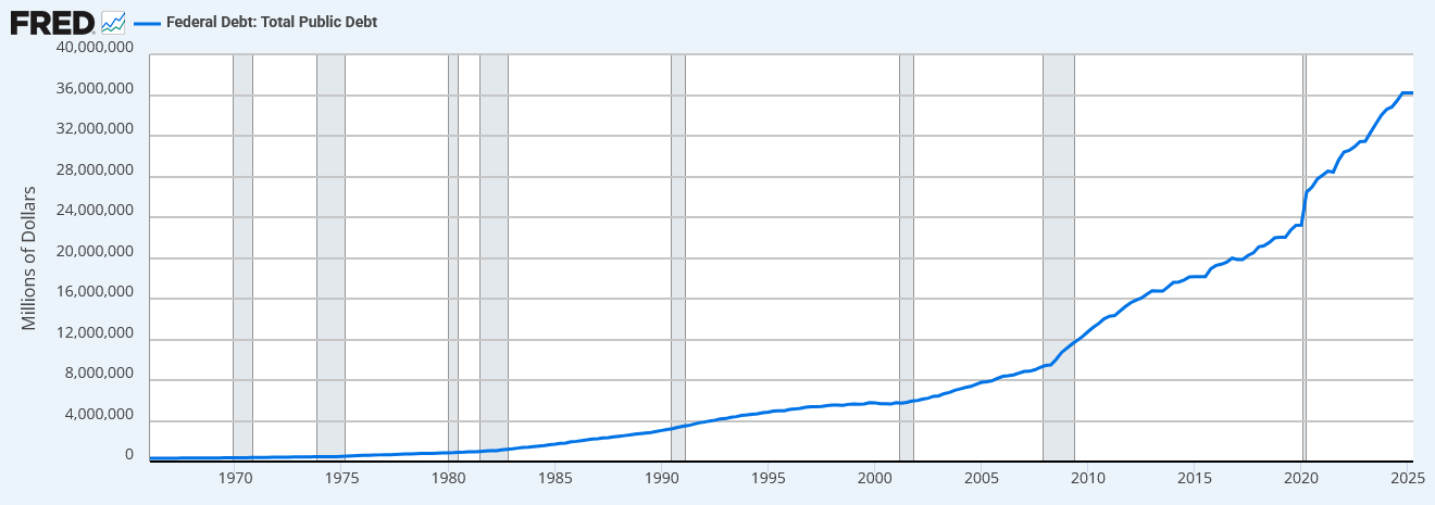 高金利環境が長引くほど、利払い費は膨れ上がっていくということです。そして、利払い費が増えると、財源は圧迫されます。ただでさえ、必要支出をするだけで財政赤字になるのに、そのうえさらに利払い費が増えるとなると、財政赤字はさらに拡大し、国債をさらに発行する必要が出てきます。これは、外から見れば、利子を借金で返してるように見えます。見えるというか実際そうです。これは良くないです。良くないので、米国債の需要は危ない、投資家離れが起きる、債務危機だと定期的に騒がれてしまうわけです。要するに、最大の問題は金利です。金利が下がれば、債務問題に対する懸念も、ある程度後退するということです。