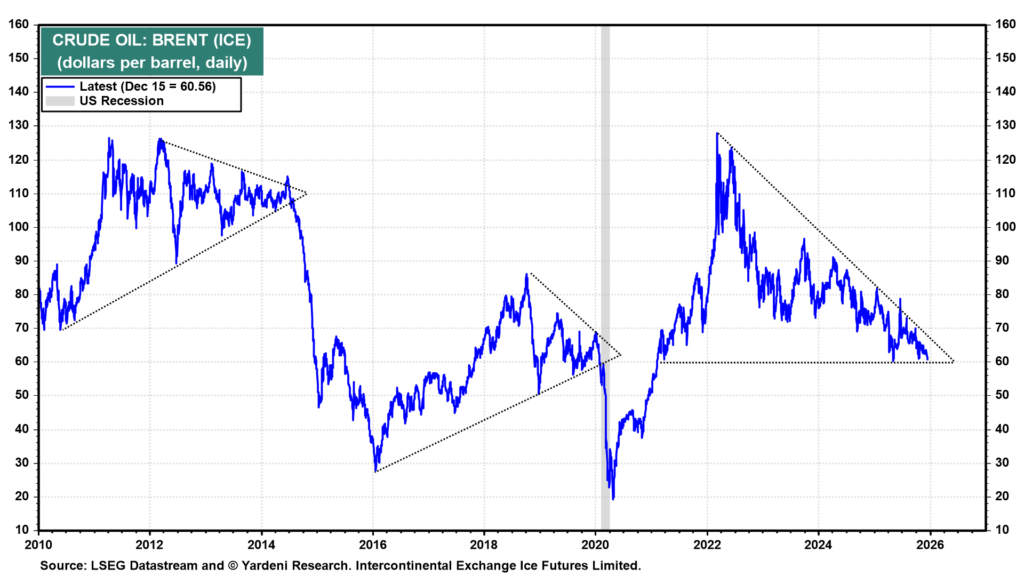 続いてこちらは、ブレント原油価格のチャートです。ここから数週間、ブレント原油価格に注目してください。2014年と2020年に起こったように、足元三角持ち合いパターンが形成されており、もし60ドルを下回って下方向にブレイクすることがあれば、原油価格は急落する可能性があります。ファンダメンタルズの観点から見れば、原油価格にはネガティブな経済状況です。米国の石油生産量は増加傾向にあり、2023年以降は一貫して生産量は需要を上回っています。米国は長年にわたり、原油及び石油製品の純輸入国でしたが、2022年から純輸出国となっています。さらに、トランプ大統領は、原油に対する規制緩和を進めています。また、原油消費大国である中国では、需要が低迷しており、原油輸入量は横ばいが続いています。つまり、世界的に供給が需要を上回る状況が続いており、その状況が変わる兆しもないため、原油価格の下落トレンドは継続するだろうというのが、市場のコンセンサスだということです。ぜひ注目してください。