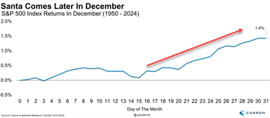 「サンタクロース・ラリー」は、12月全体を指さない。厳密に言えば、この強気相場は年末の最後の5営業日と翌年の最初の2営業日を指す。