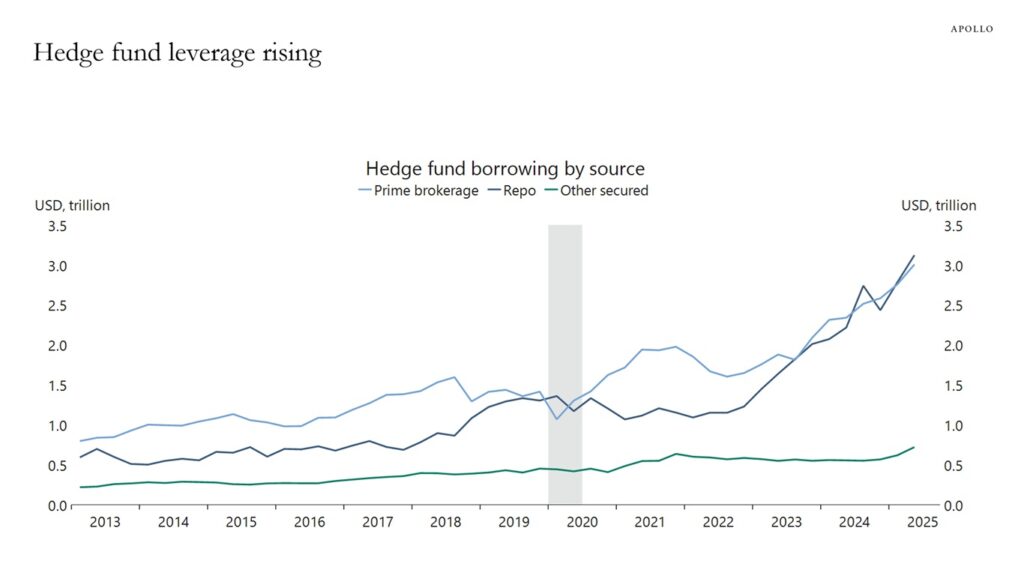 アポロ:ヘッジファンドのレバレッジが急速に上昇している。プライムブローカーとレポの借入は、過去2年間で実質的に2倍になった。