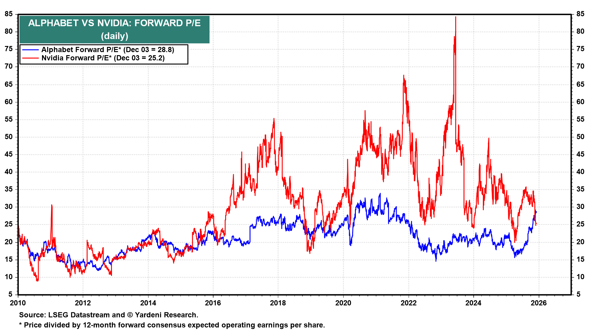 グーグルとエヌビディアのPER比較