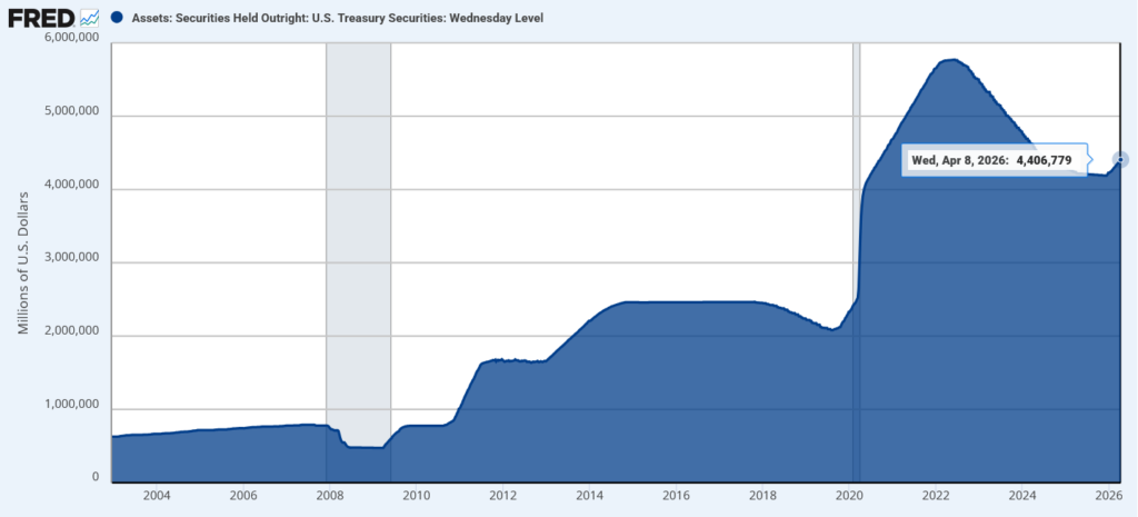 yutakabu.com 市場分析チャート 2026/4/13 2026.04.132026.04.15 【市場分析】資産防衛せよ。手遅れになる前に。「資産形成」ではなく「資産防衛」。今の金融システムにおいて、私たちが投資をする真の目的はここにあります。FRBのバランスシート拡大、米国債の買い漁り、そして再燃の兆しを見せるインフレ。今、世界経済の裏...