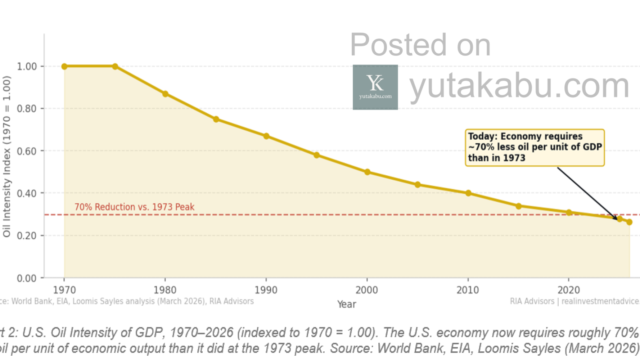 このチャートは、モルガン・スタンレー・リサーチが作成したもので、産業ごとの「AI露出度」と「労働生産性」の推移を可視化したものです。縦軸は従業員一人当たりの出力の変化率、横軸は2006年から2025年末までの時系列を表しています。グラフを見ると、2025年に入ってからAIとの関わりが深い「High-AI」産業の生産性が、他の産業を突き放すように急上昇していることが分かります。これまではAIの効果は期待や予測の段階に留まっていましたが、ついに公的な統計データとしてその成果が表面化し始めたと言えるでしょう。