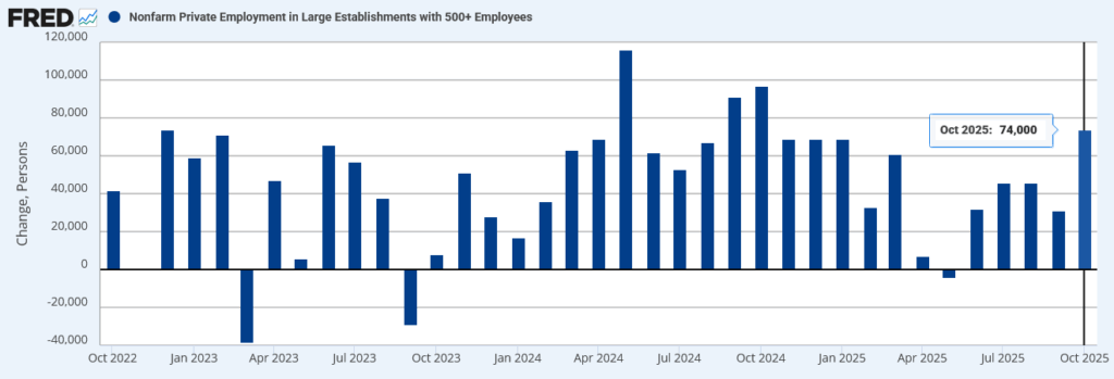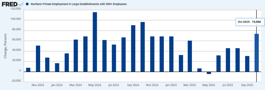 ADP民間雇用統計:大企業(500+):月次増減数