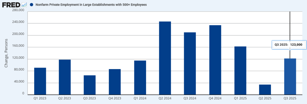 ADP民間雇用統計:大企業(500+):四半期増減数