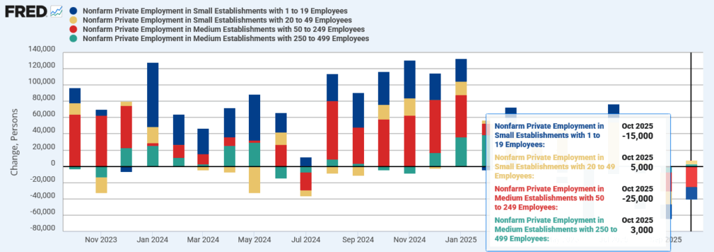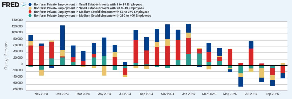 ADP民間雇用統計:中小企業(500-):月次増減数