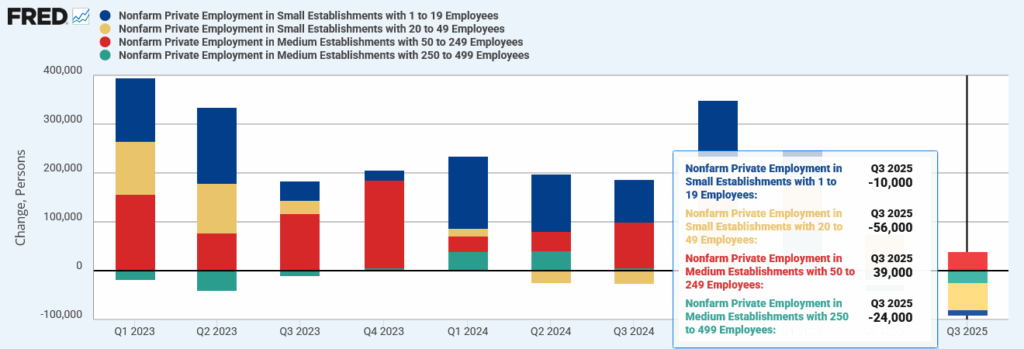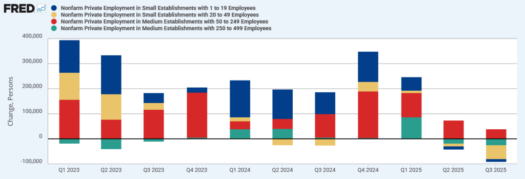 ADP民間雇用統計:中小企業(500-):四半期増減数