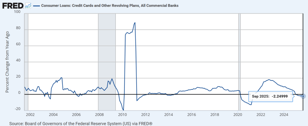 米国のすべての商業銀行によるクレジットカードや回転信用枠(リボルビングローン)を対象とした消費者向け貸出残高を示す指標。個人の借入動向や消費活動に伴う信用需要の強さを示し、家計の負債状況や景気循環の分析に用いられる。