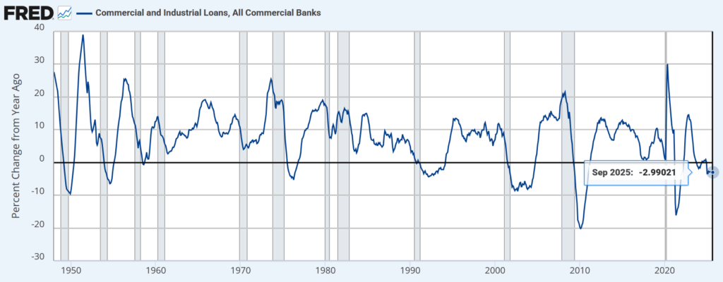米国のすべての商業銀行による企業向け融資(運転資金や設備投資など)の貸出残高を集計した指標。企業の資金需要や景気動向を示し、投資活動や信用環境の変化を分析する際に用いられる。