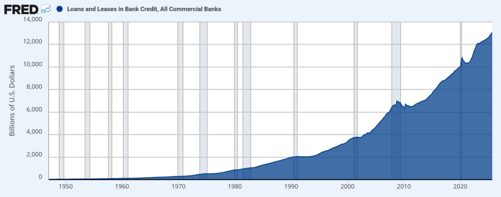 米国のすべての商業銀行が保有する貸出金およびリース資産の総額を示す指標。銀行の信用供与規模や貸出姿勢を示し、金融機関のリスクテイク状況や景気との連動性を分析する際に用いられる。